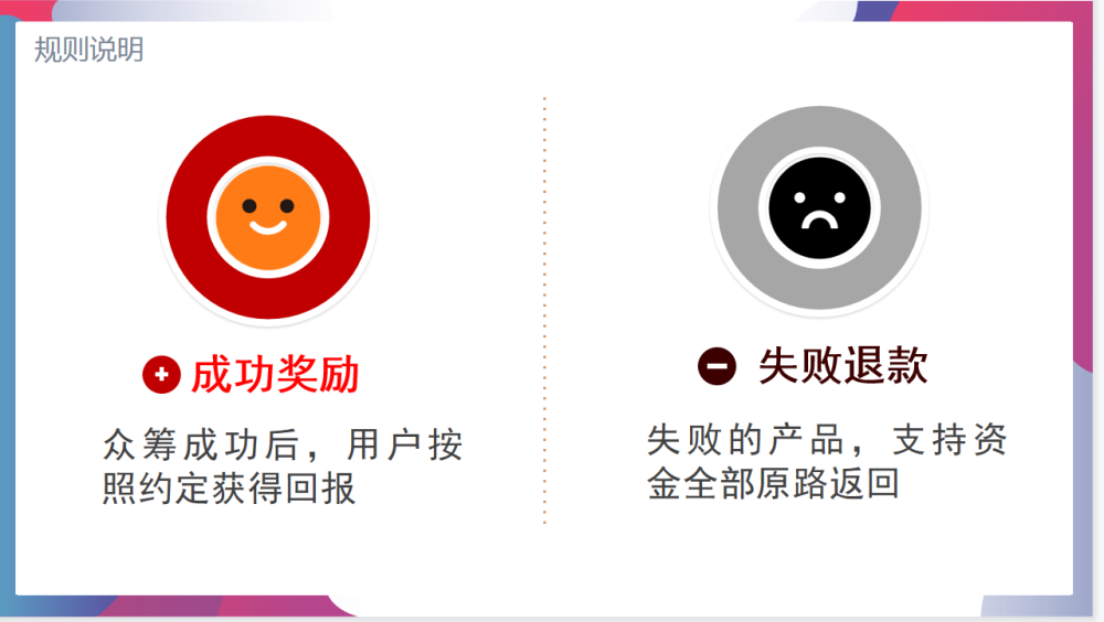 1、发起人必须在规定的时间内,筹集到目标资金,才算众筹成功,否则就是失败。
