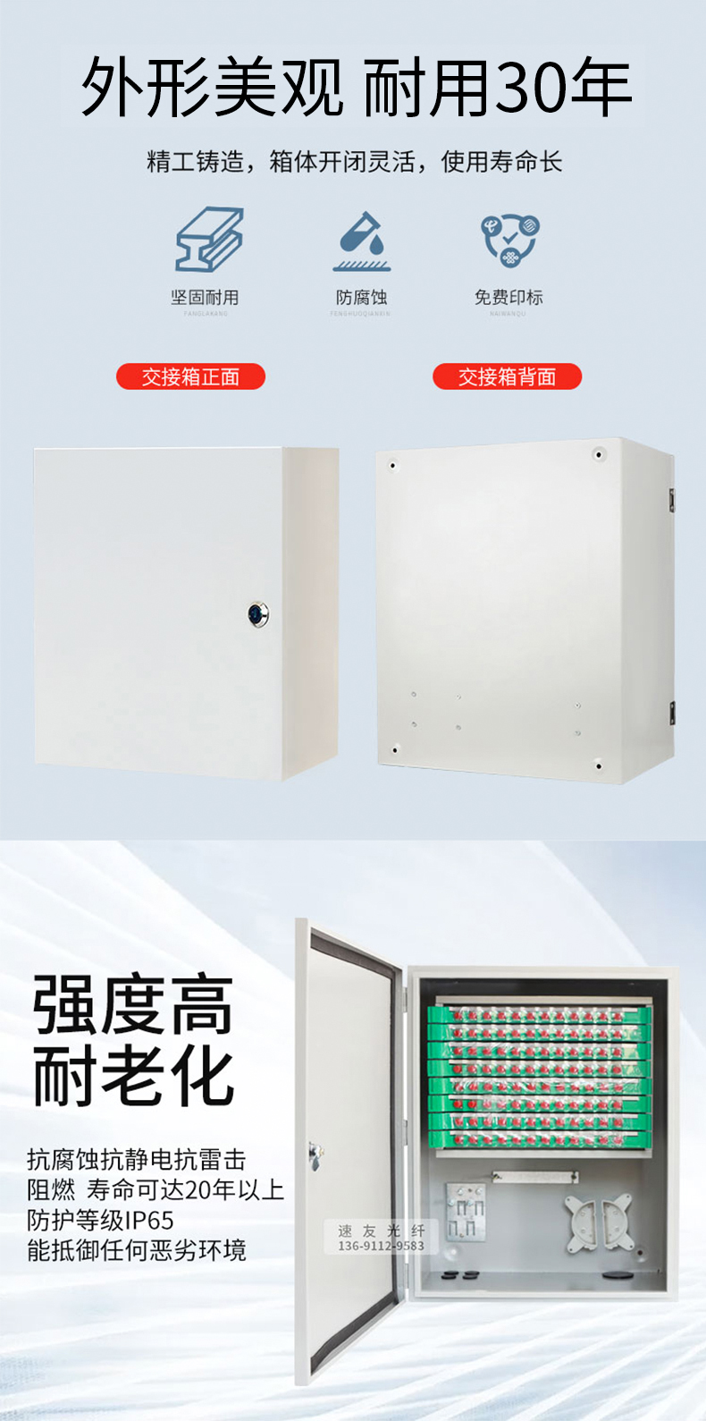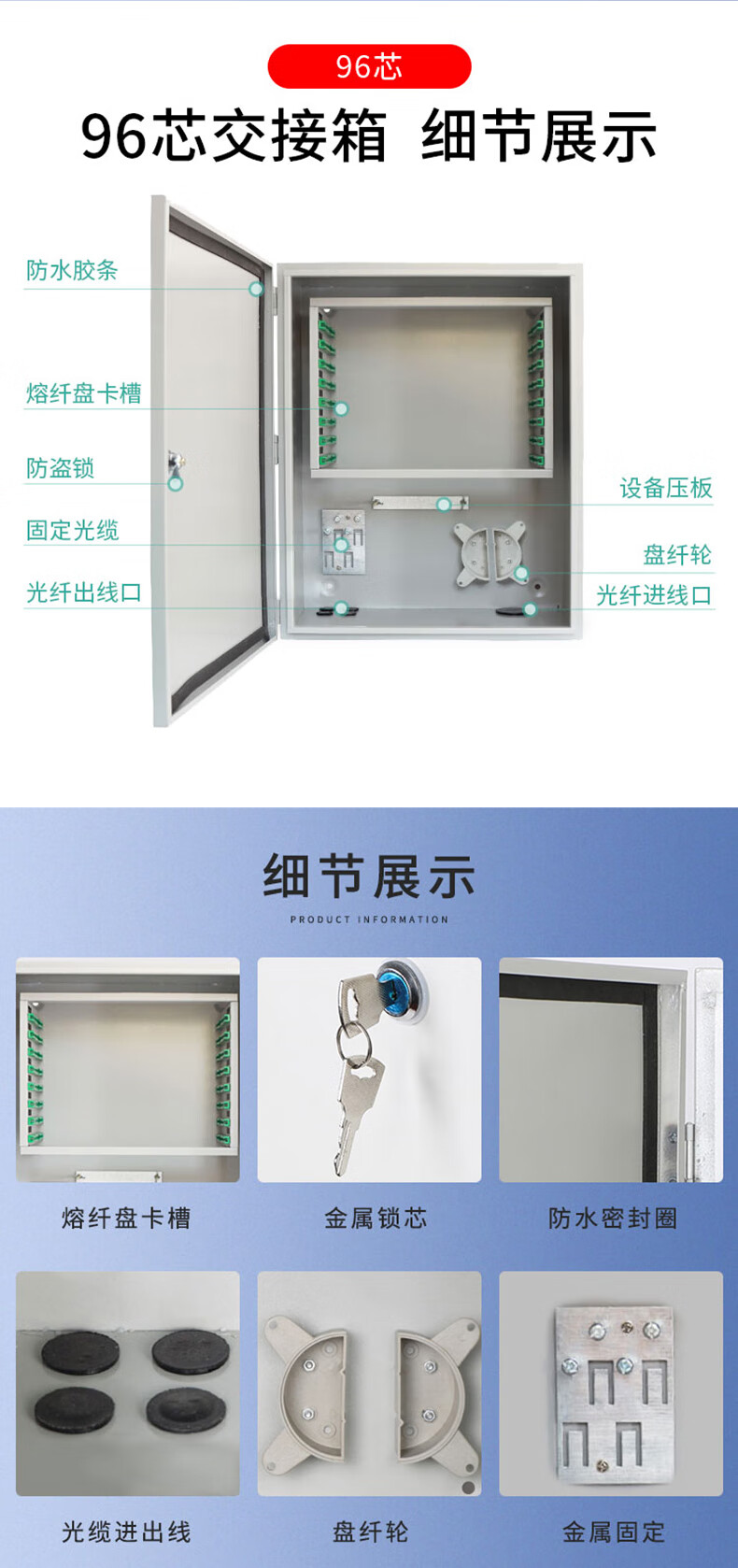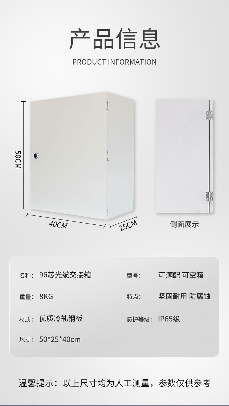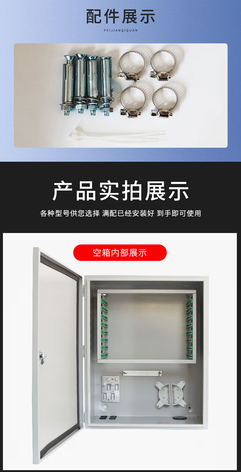 商品名称: 96芯光缆交接箱 室外光纤配线架机柜冷轧板式FTTH壁挂光交箱 分纤箱 96芯壁挂式(SC满配) 96芯