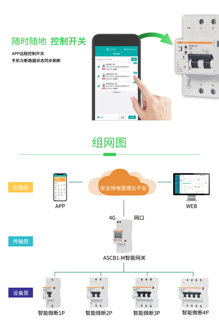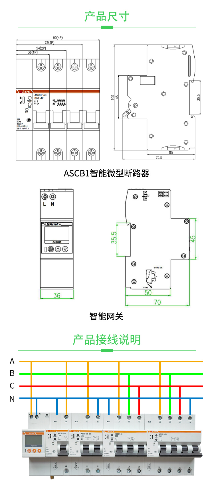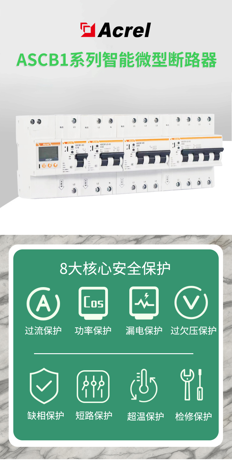 主要应用领域ASCB1-63-C32-2P智能微型断路器广泛应用于户内建筑物及其类似场所的工业、商业、民用建筑及基础设施等领域的低压终端配电网络。例如,它可以用于工业生产线、商业设施、住宅小区、办公楼宇等,确保用电安全和电能管理的智能化。通过与智能网关配合使用,ASCB1-63-C32-2P能够实现更**别的电力数据分析和远程控制,满足现代智慧城市和智能建筑的需求13579。