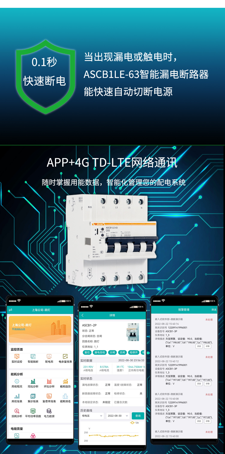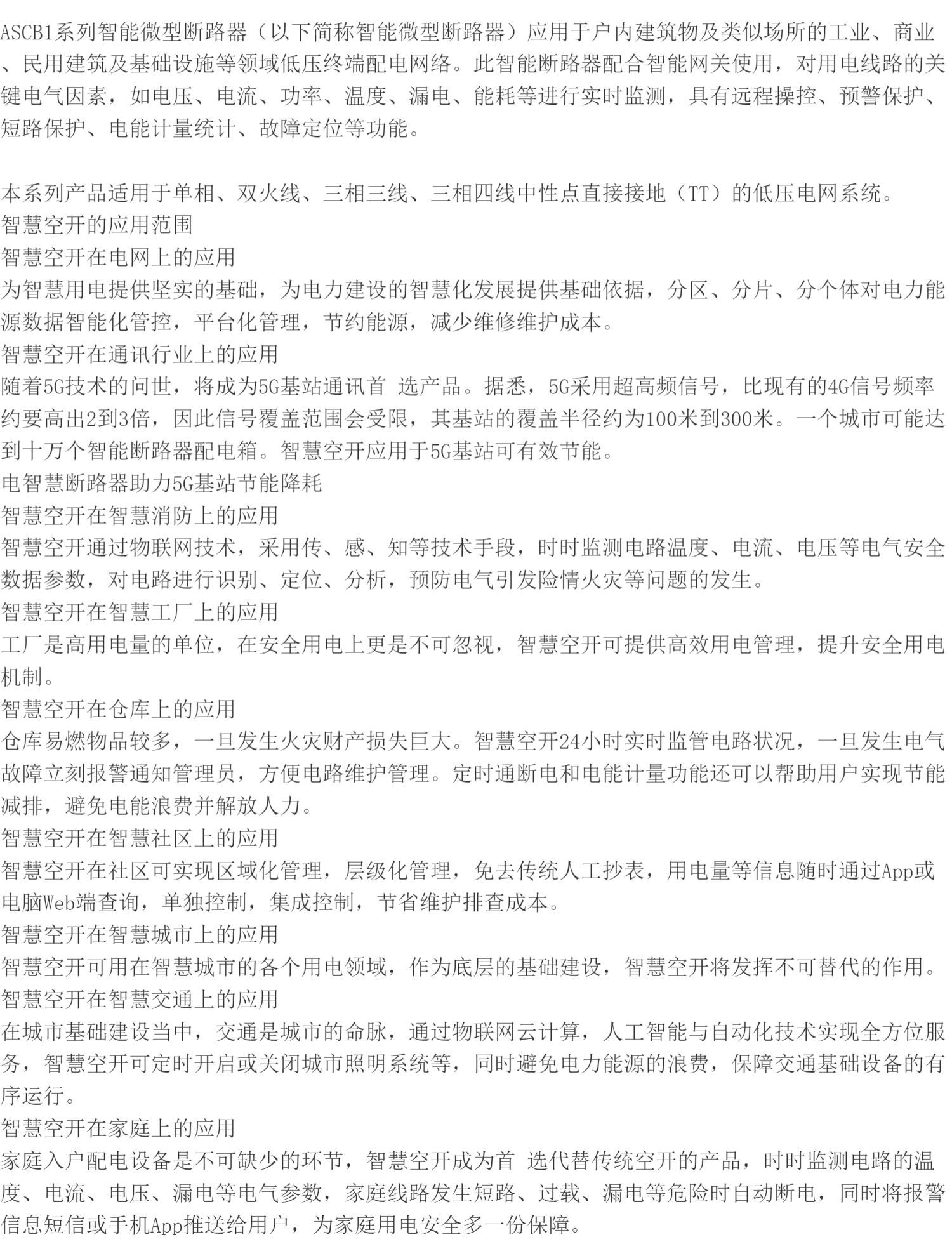 总结综上所述,ASCB1-63-C32-2P智能微型断路器是一款集成了多项功能的先进电力监控设备,适用于多种应用场景,能够提供实时的电力数据分析和远程控制,有助于提高电力系统的效率和安全性。