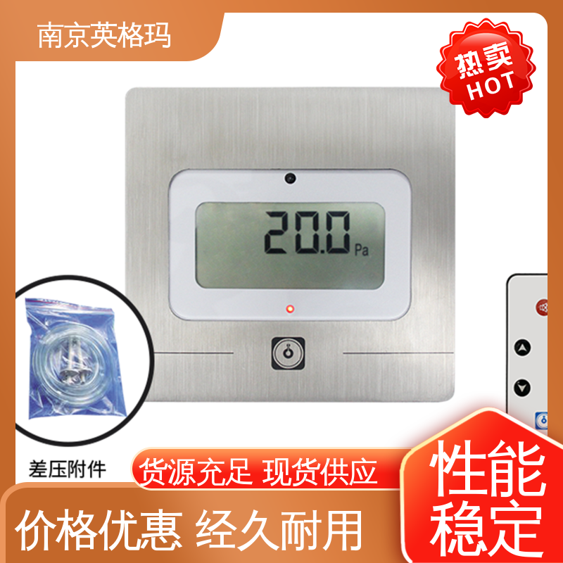 IN62是一款专为洁净室而设计的差压变送器,采用压阻膜片式MEMS传感器, 测量精度高,长期稳定性好。整机采用嵌入式安装,基本与墙面齐平,极大的减 少了灰尘的附着面积,面板采用生物洁净厂房专用的不锈钢无积尘拉丝面板,符 合洁净室干净无尘的要求,厚度约 1mm,更加符合洁净室易清洁、无积尘的要求; 同时采用红外遥控的方式取代了传统的按键来进行参数设置,人员无需接触产品 即可完成一系列的操作。 主要技术指标 量程范围: -500~+500Pa 内可定制 精 度: ±1%FS(在量程下限 ~ -3Pa 和+3Pa ~ 量程上限范围内,常温条件下) 信号输出:电流输出型:4~20mA(三线制),电气负载≤500Ω 电压输出型:0~10V(三线制),电气负载≥10KΩ 485 输出型:ModBus-RTU 压力介质:空气或非导电性、无爆炸性的气体 响应时间:T90≤3s 供电电源:20 ~ 28VDC 或 24VAC 工作压力:小于 1Bar 工作环境:温度 0~+50℃,湿度 0 ~ 85%RH 储存环境:温度-20 ~ +60℃,湿度 0 ~ 85%RH