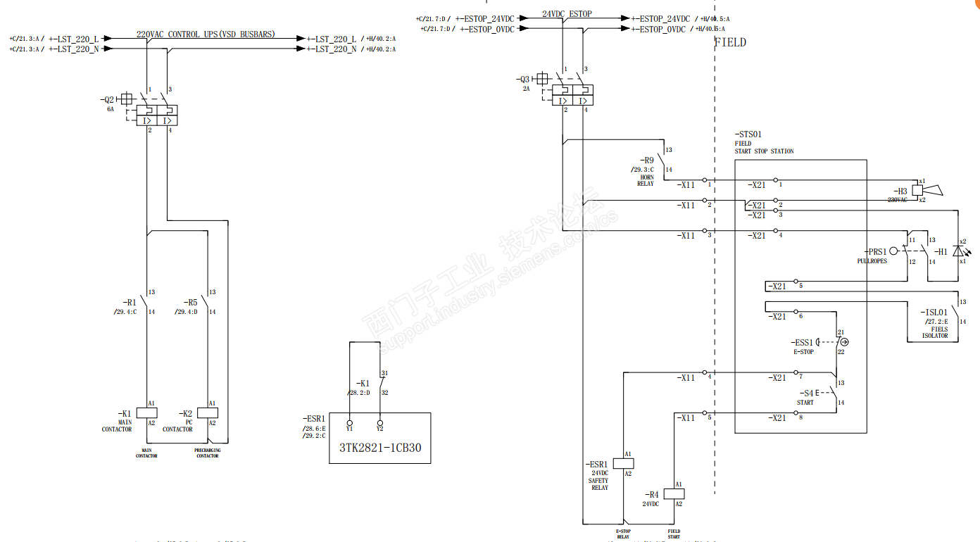 个性化提醒了我,又看了一遍图纸,发现K1接触器使用了安全继电器,可能还是出于安全角度考虑设计了K1。负载是散货输送皮带机,我们公司以前几个类似项目还真没用过安全继电器的。刚刚了解了下安全继电器,安全继电器接线应该是纯硬线连接,老外画的图又把信号接入了CU。而且S120用安全继电器,有这种用法吗