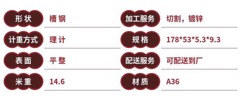 槽钢C7*9.8通过先进的生产设备和严格的质量控制,确保产品尺寸**,截面形状规则。标准化的生产工艺赋予槽钢优异的抗弯性能和承载能力,可在复杂环境下长期稳定使用。表面镀锌处理