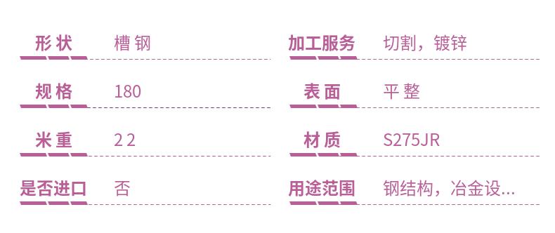 S275JR是低合金高强度钢的一种,广泛应用于结构件的制造,尤其适用于中等强度要求的建筑和工业结构。S275JR钢材具有良好的焊接性、成型性和加工性,适合进行各种机械加工,且价格较为经济,满足多种工程需求。规格:UPN180(70811)