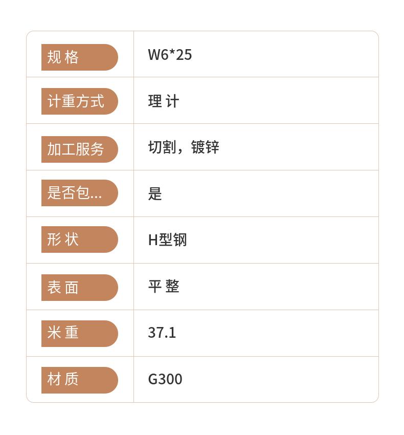 产品:我们的W6*25美标马钢H型钢均为优质材料生产,符合相关行业标准,质量可靠。