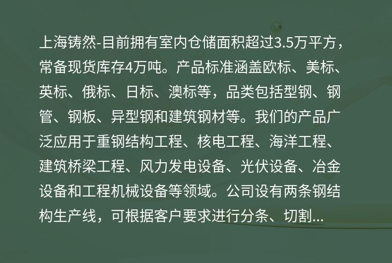 该款H型钢为外标现货,意味着它符合国际上通用的H型钢规格,尺寸和性能等方面符合欧美等地区的要求,可以直接使用在海外项目中,避免了标准不符和采购周期长的问题。UB系列是澳大利亚常见的H型钢系列之一,UB代表的是“Universal Beam”,即通用型梁,广泛应用于建筑、桥梁和其他机械设备中。