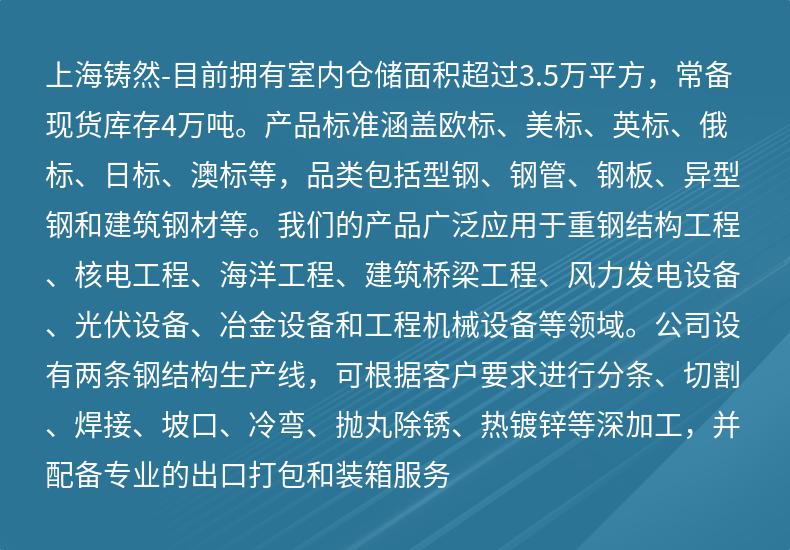 为了满足客户的即时需求,本公司提供英标槽钢PFC125x65x5.5现货储备。所有现货钢材在储存过程中会进行严格的质量检验,确保每根钢材的尺寸、材质、表面等符合标准要求。特别是表面完好的钢材,能够避免因表面缺陷导致的后续加工问题,保证后期应用中不发生锈蚀或损坏。