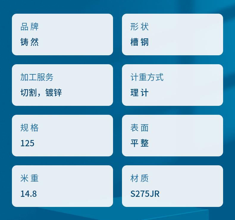 PFC125x65x5.5是槽钢的具体规格,其中“125x65”代表槽钢的高度和腿宽,单位是毫米;“5.5”则是槽钢的厚度。该规格的槽钢具有较好的承载能力,适合用于承受较大负荷的结构部分。