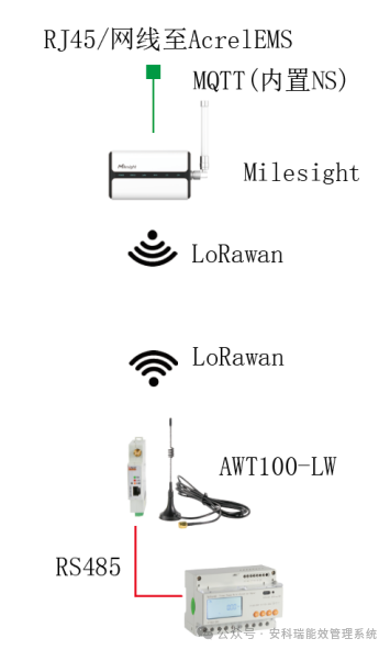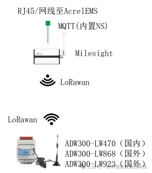 3LoraWAN网关(海外) 公司部分LoraWAN仪表可直接接入LoRaWAN网关,目前海外适配milesight网关,采集频率1分钟的情况下每个信道下接LoRaWAN设备不超过8个。 适用于数据实时性要求不高场合。 AcrelEMS企业微电网能效管理系统 Acrel-EIOT物联网平台 Acrel-3000电能管理系统 Acrel-5000能耗管理系统 Acrel-7000企业能源管控系统 AcrelCloud-3200预付费系统