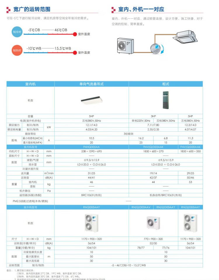 噪音水平:内外机噪音均控制在较低水平,为机房提供安静的工作环境。