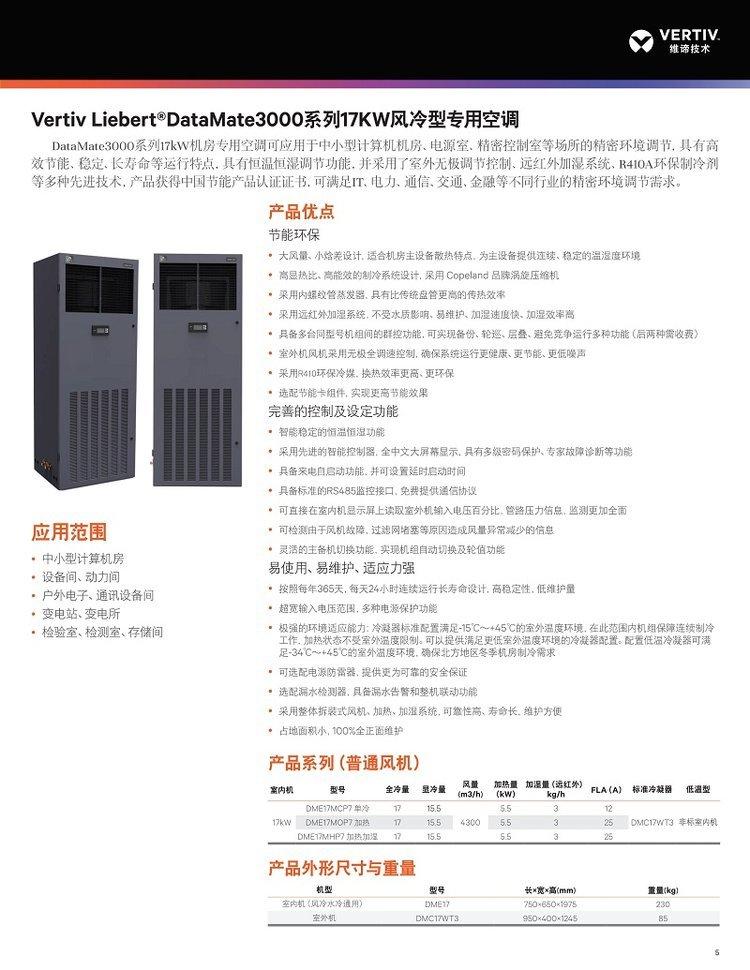 维谛机房精密空调DME12MOP5是一款专为机房设计的精密空调,具有12.5KW的制冷量和5匹的制冷能力,同时支持冷暖功能,能够实现恒温恒湿的可控环境。以下是关于该产品的详细介绍: