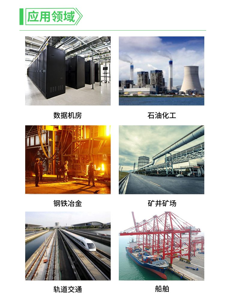 适用于工业领域如:电解铝、矿井、玻璃厂、电炉和试验设备、冶金厂、化工厂、爆炸危险场所、计算机中心及应急电源等的交、直流不接地系统中。。