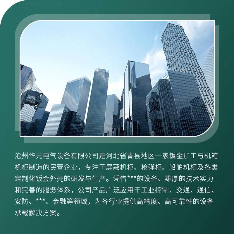 沧州华元电气设备有限公司是河北省青县地区一家钣金加工与机箱机柜制造的民营企业,专注于屏蔽机柜、枪弹柜、船舶机柜及各类定制化钣金外壳的研发与生产。凭借先进的设备、雄厚的技术实力和完善的服务体系,公司产品广泛应用于工业控制、交通、通信、安防、国防、金融等领域,为各行业提供高精度、高可靠性的设备承载解决方案。