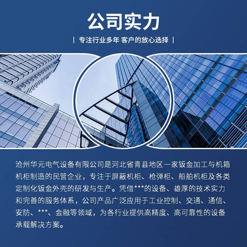 沧州华元电气设备有限公司是河北省青县地区一家钣金加工与机箱机柜制造的民营企业,专注于屏蔽机柜、枪弹柜、船舶机柜及各类定制化钣金外壳的研发与生产。凭借先进的设备、雄厚的技术实力和完善的服务体系,公司产品广泛应用于工业控制、交通、通信、安防、国防、金融等领域,为各行业提供高精度、高可靠性的设备承载解决方案。