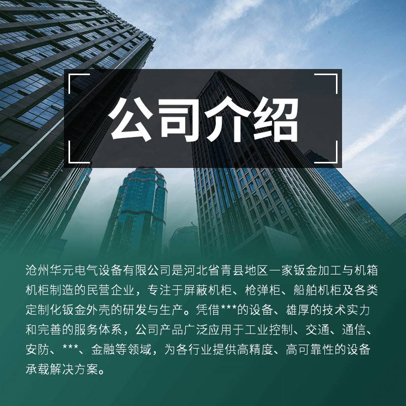 沧州华元电气设备有限公司是河北省青县地区一家钣金加工与机箱机柜制造的民营企业,专注于屏蔽机柜、枪弹柜、船舶机柜及各类定制化钣金外壳的研发与生产。凭借先进的设备、雄厚的技术实力和完善的服务体系,公司产品广泛应用于工业控制、交通、通信、安防、国防、金融等领域,为各行业提供高精度、高可靠性的设备承载解决方案。