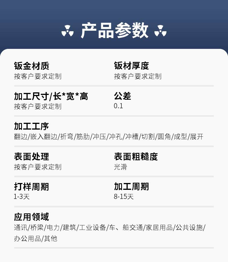 工艺覆盖:激光切割、数控冲压、焊接、表面处理、组装等全流程一体化生产