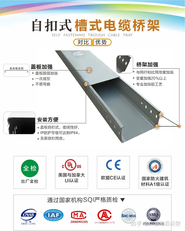 自扣式槽式桥架的市场发展呈现 “需求爆发、技术领跑、区域分化” 的特征,预计到 2025 年中国市场规模将突破 150 亿元,年复合增长率达 18%。企业需把握新基建、智能化、绿色化三大主线,通过技术创新(如智能监测系统)、区域布局(中西部产能基地)和全球化认证(CE/UL)构建竞争壁垒,在市场建立品牌溢价。未来,随着光伏桥架、海洋风电等新兴场景的开拓,自扣式槽式桥架有望成为桥架行业结构性增长的核心引擎。