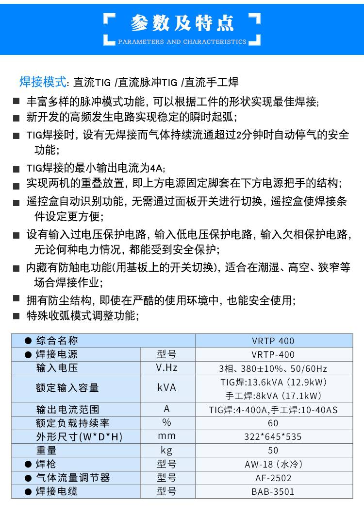 逆变直流脉冲TIG弧焊机 VRTP400直流脉冲焊机,