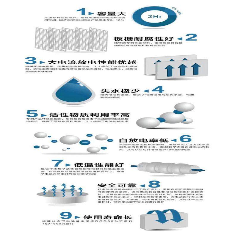 3. 设计寿命长:2V系列电池设计浮充寿命达15年以上,6V、12V为10年;