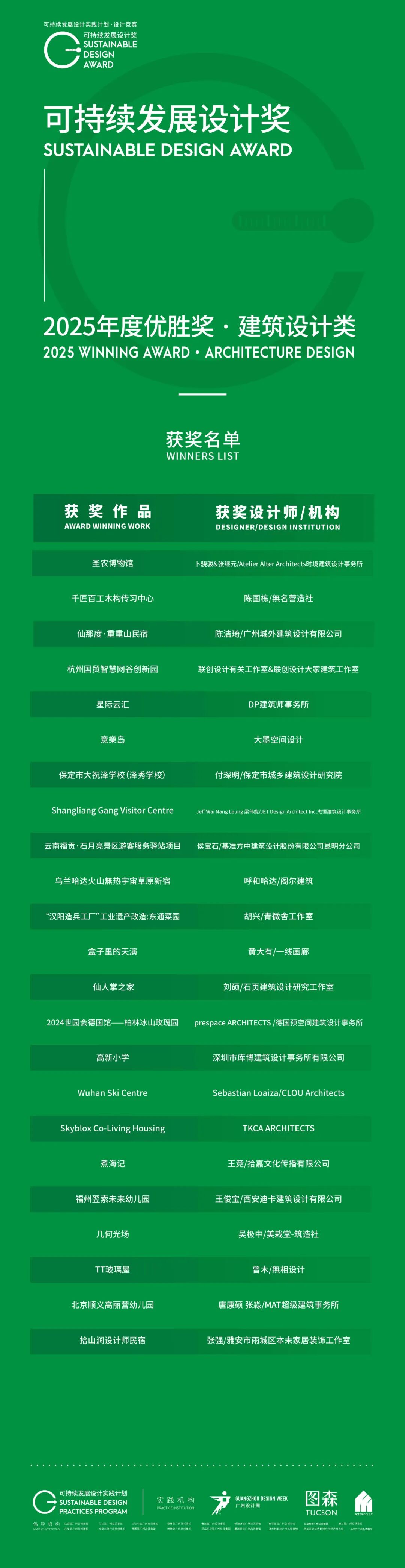 可持续发展设计奖|2025年度优胜奖(建筑/景观/室内)名单正式揭晓 !