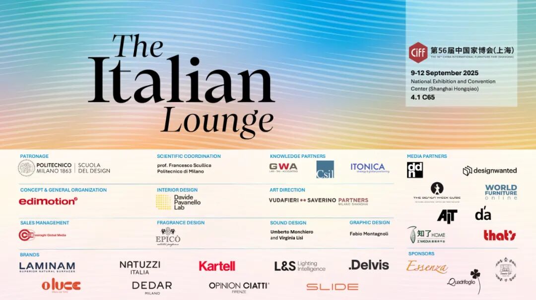 CSIL作为家具市场研究的全球领导者,为此提供了国际趋势和经济动态的分析。GWA拥有超过二十年协助意大利公司在中国发展的经验,负责业务开发和关系管理。Itonica确保了在中国市场的成功定位。在这些战略合作伙伴的支持下,The Italian Lounge在第56届CIFF上海的舞台上圆满落幕,进一步巩固其作为意中设计交流平台的重要地位,为持续推动意大利设计与中国市场的对话合作奠定了坚实基础。2026年9月5-8日,CIFF上海将继续携手The Italian Lounge,解锁更深度的意式家居美学与意式高端生活方式。