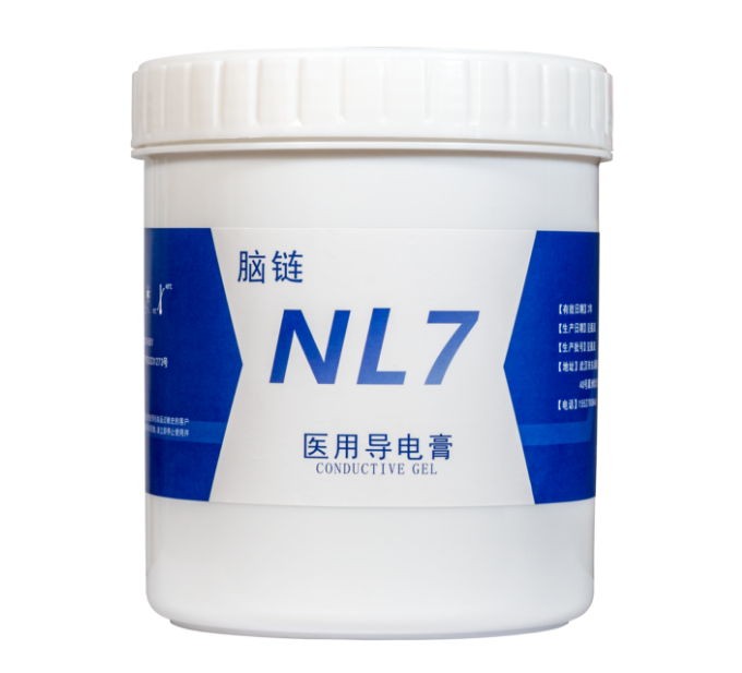 脑链医用导电膏系列,其中NL7脑电医用导电膏(凝胶)作为新一代水性高分子导电凝胶,采用亲肤的医用级原料配制而成,可搭配脑电电极帽/心脏除颤仪使用。使用时能快速降低电极与皮肤间的接触阻抗,减少环境噪声对脑电信号的干扰,确保采集到的信号稳定、清晰,有效避免因阻抗过高导致的信号失真问题;同时其温和配方可减少长时间佩戴脑电帽对头皮的刺激,兼顾信号质量与使用舒适度。