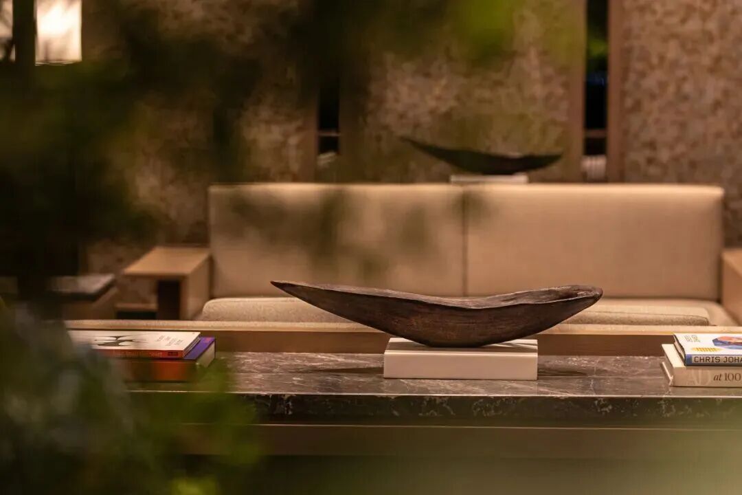 「渔具、渔网、船木,海洋与海底文化遗产」都是此次艺术设计方案的灵感来源,藉由这些多元的启发,创造出各式各样的定制艺术品,同时秉承对保护环境,部分艺术品设计采用旧物回收再生利用。 在色彩构成方面,「湛蓝、碧绿、铁锈面肌理与点缀的金属铜材质为主调」来与Blink宁静柔和的室内设计作呼应。