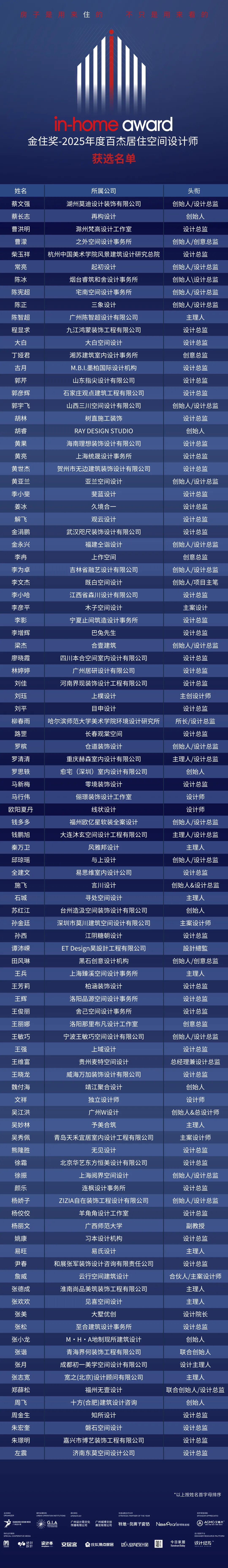 “金住奖·2025年度中国百杰居住空间设计师”