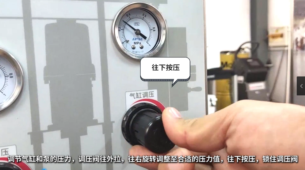 2、操作使用时只需接通气源,调整压力,升高气缸,放好标准的润滑脂油桶;