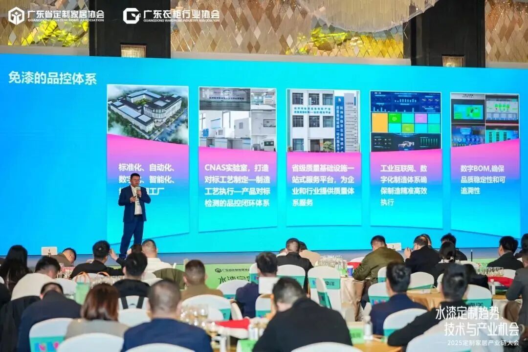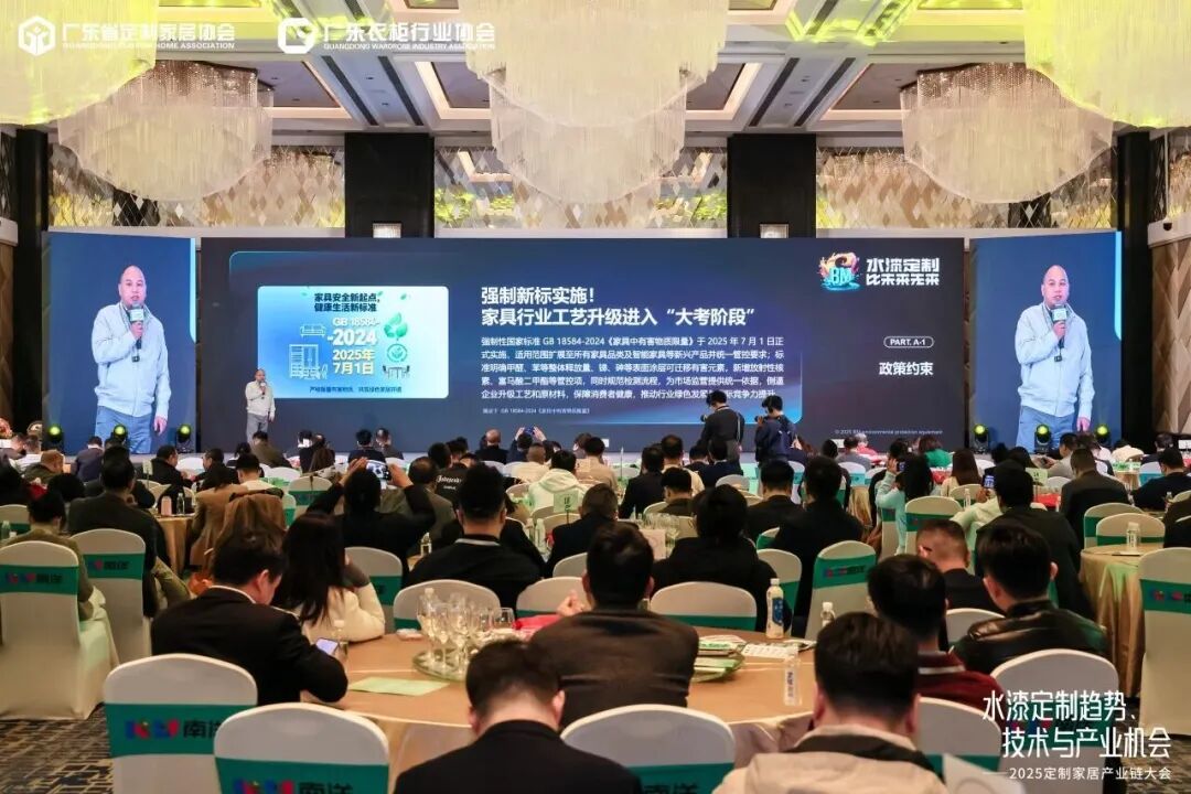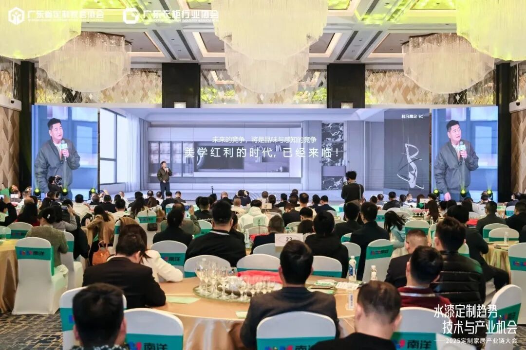 11月20日,由广东省定制家居协会、广东衣柜行业协会主办的“水漆定制趋势、技术与产业机会”——2025定制家居产业链大会在佛山成功举办。来自定制家居产业链上下游的行业大咖、企业代表、技术专家及创新先锋等逾400人齐聚,围绕水漆定制的技术突破、美学升维、供应链协同与市场机遇展开深度对话,共同探寻行业高质量发展的新路径。