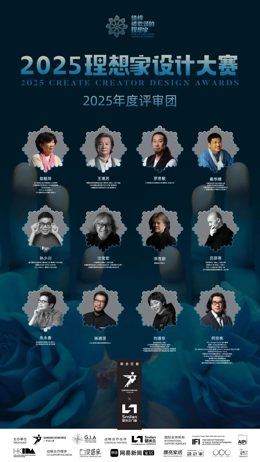 "值得被歌颂的理想家"由广州设计周携手圣米兰联合巨献,是一项"以曲为媒、纪录设计美学理想家“的大型纪录活动。 理想家设计大赛作为“值得被歌颂的理想家”项目延伸的当代居家空间设计赛事活动,旨在激发当代中国青年设计理想家们,挥洒他们对于中国未来人居理想范本的肆意创想和实践,勾勒当代中国人“理想的家”的样子,共同描绘中国人居的理想模样。 理想家设计大赛始终致力于发掘具有前瞻视野、人文厚度与实践价值的理想居住空间。而大赛的**性与最终作品的高度,都离不开背后那道最锐利而深邃的目光--理想家设计大赛2025年度评审团。 2025年,理想家设计大赛荣幸邀请到12位国内**的设计组织**与**设计专家组成**评审团。他们将秉持理念、美学、创新、技巧等核心评审标准,与我们一同探索与定义未来理想人居的无限可能。