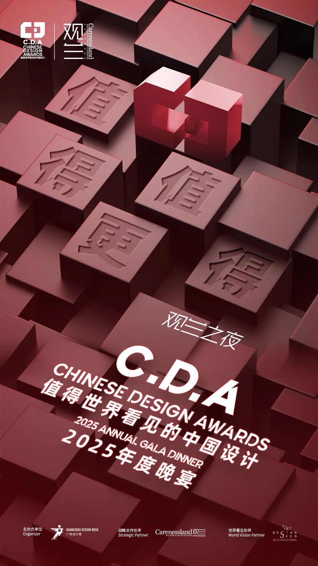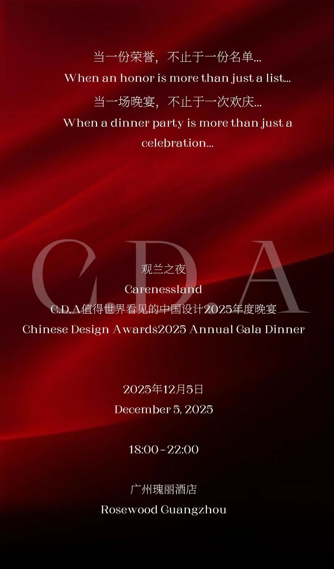 12月5日晚,我们将共同见证他们的荣誉授予时刻。这既是对他们数十年如一日坚持创作、定义中国当代生活美学的崇高致敬,也是致敬那些让材质说话、让空间呼吸的杰出人居空间设计。 同时,我们还将共同见证C.D.A100杰出人居空间设计师的荣誉加冕时刻,记录下他们值得被看见的璀璨起点。2025年,我们发掘并推出了百位杰出人居空间设计师,这批**设计师与其作品,被看见是荣誉,而如何让**持续发生、让值得更值得,才是真正的命题。 2026年,我们启动“更值得”计划,为设计师们构建一个从成长到共赢的持续体系。 12月5日晚, 现场将从三大维度, 正式发布2026更值得计划! 敬请期待!