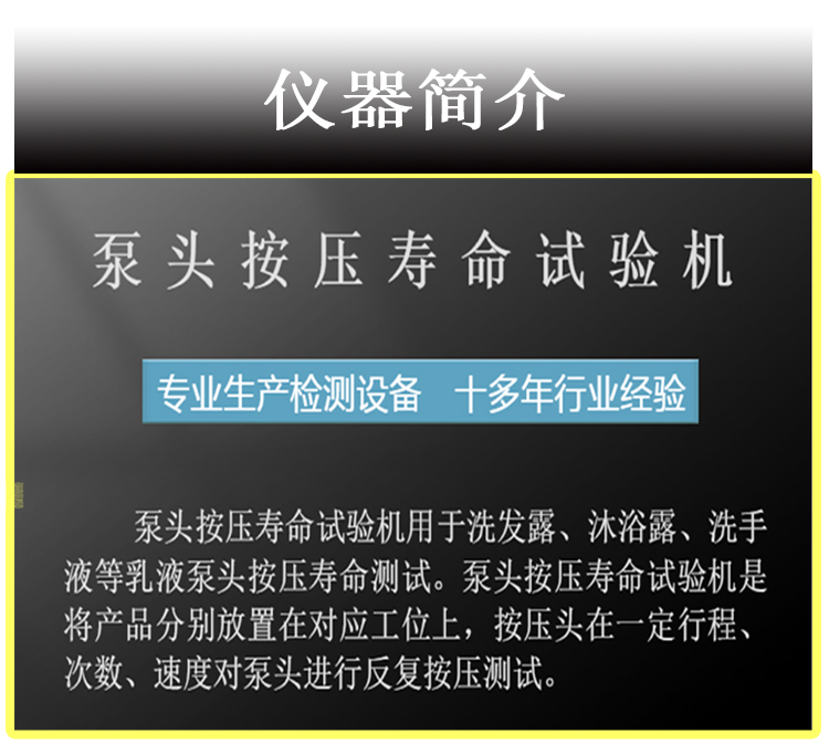 - 重复按压次数:不同产品设计使用频率不同,设备需支持设定多种按压周期,适应不同产品需求。