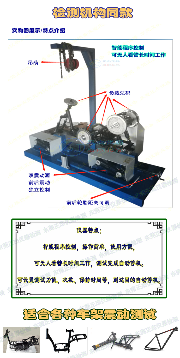 如果您正在寻找可靠的车架振动试验解决方案,不妨考虑东莞市正杰仪器科技有限公司的电动自行车前后同时振动试验机。通过科学检测,助力您的产品品质稳步提升,筑牢安全防线,为广大用户提供更优质的骑行体验。