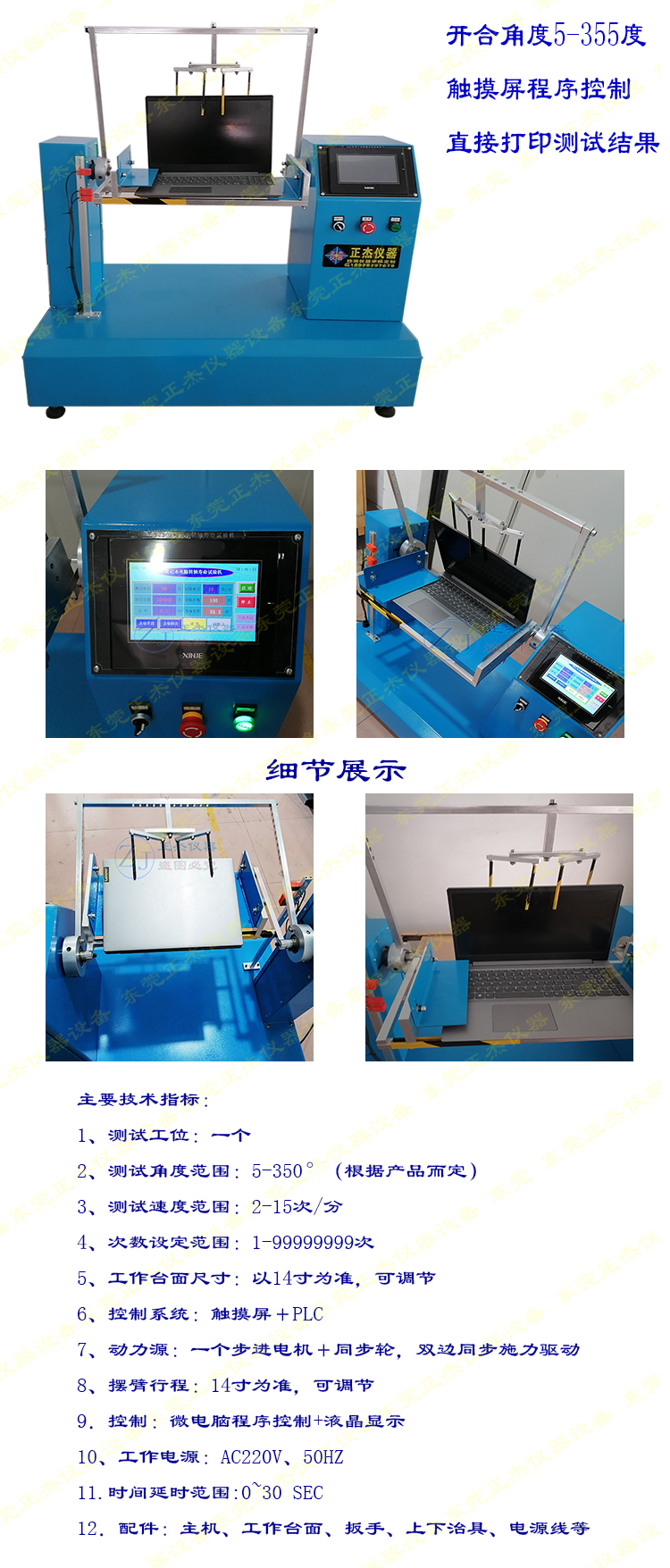 - 开合次数可预设,满足不同品牌和型号的测试标准。