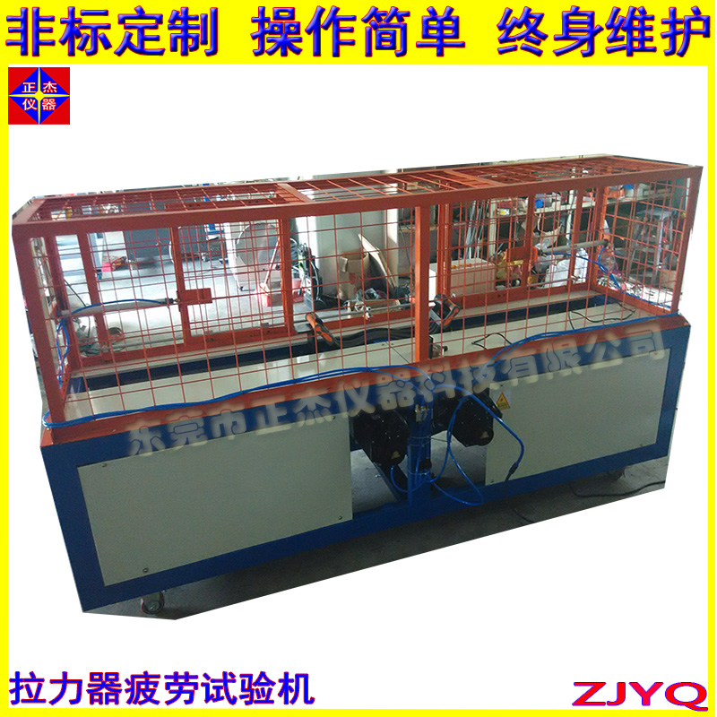 拉力器拉伸疲劳试验机主要针对材料和产品在反复拉伸状态下的耐久性进行测定。该设备通过模拟材料在实际使用中的拉伸及释放循环,评估其疲劳寿命和性能变化。特别适用于钢丝绳、金属丝线、纤维绳索及各类弹性材料。