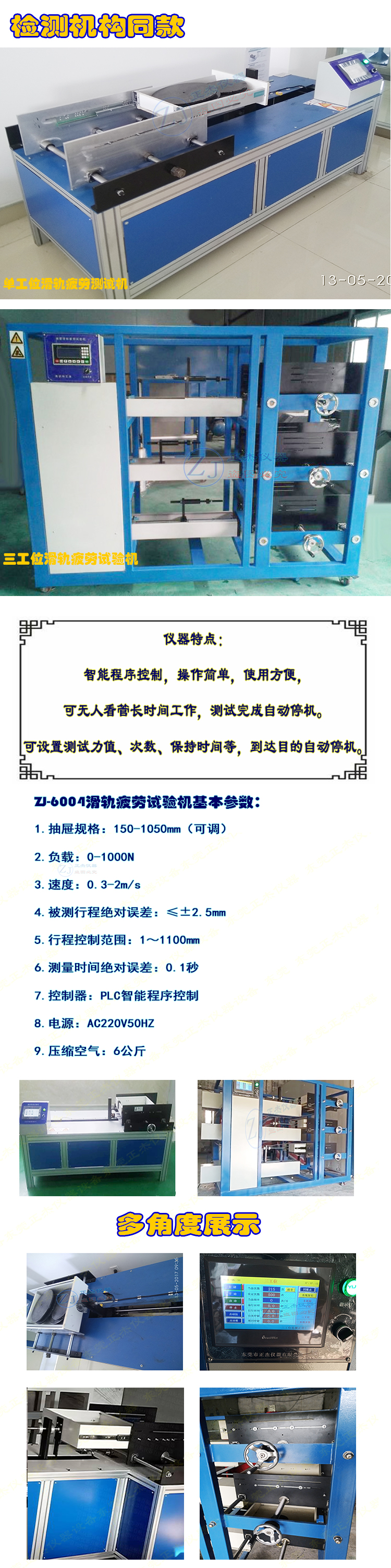 选择一款合适的试验机,要注重设备的技术特点与实际需求匹配。东莞市正杰仪器科技有限公司推出的抽屉滑轨寿命试验机具备以下优势: