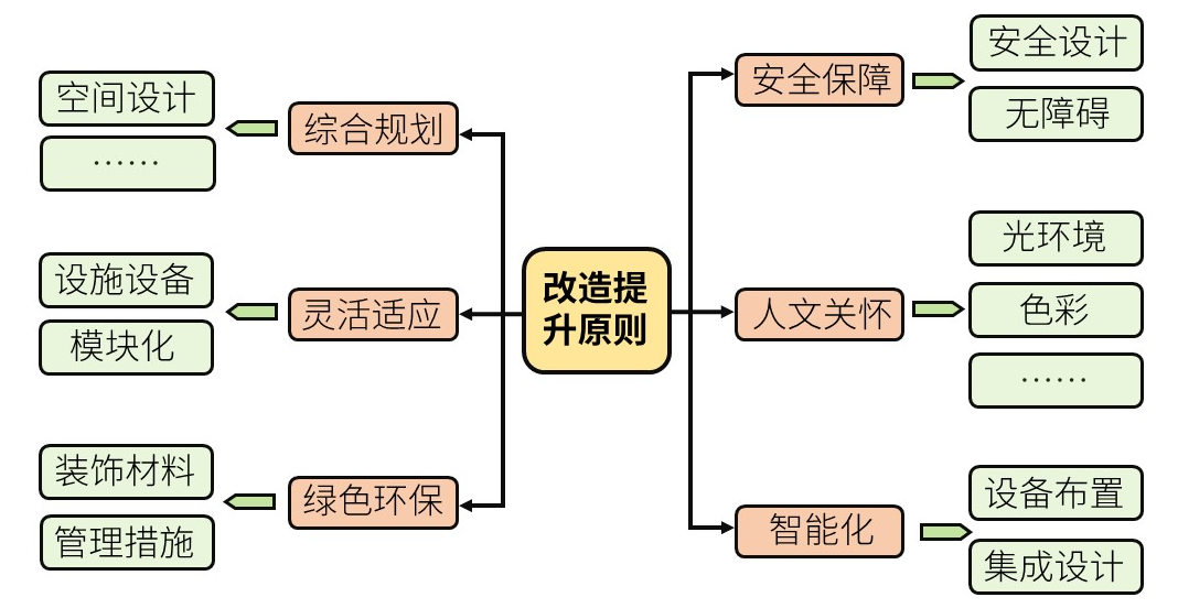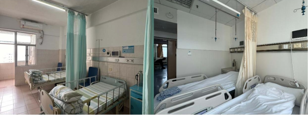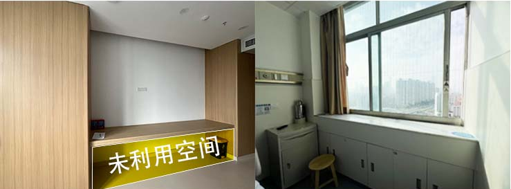 病区是患者康复与医护人员工作的核心功能空间,其环境条件、设施配置与功能布局,直接影响就医体验与医疗服务效率。本专栏将聚焦这一核心领域,持续分享前瞻性的改造理念、可落地的技术方案与具有借鉴意义的国内外案例。我们旨在为医院管理者、建设者及设计方,提供一个汇聚思路、破解难题的灵感库与工具库,共同探索从“传统病区”向“现代疗愈空间”转型的实践路径。 多维度视角下普通病房改造与提升 随着医疗服务需求的提升,普通病房改造成为优化医疗环境的重要课题。本文基于深圳市公立医院病房实地调研,从安全、人文、环保、智慧化等多维度视角,系统分析病房改造的核心理念、设计要点及实施路径。通过研究,总结改造中面临的共性挑战,并提出针对性解决方案,包括设计优化、材料优选、智能化整合、无障碍设计优化等,以多维度协同改造的方式提升病房功能性、舒适性及可持续性,为公立医院高质量发展提供实践参考。 随着社会对医疗品质与人文关怀的需求日益增长,传统普通病房的功能已经逐渐无法满足复杂多变的临床需求和患者日益增加的舒适与关怀期望,医院病房环境的升级改造显得尤为迫切。在深圳这座高速发展的城市中,医院建设近年来迅猛发展,医疗资源逐渐趋于成熟,医疗布局也已基本完成,在新的时代下,建筑和设施的更新迭代成为下一个阶段医院建设和发展的重要议题。 病房作为患者就医过程中接触时间最长的场所,不仅是其日常护理、康复和治疗的核心环境,也是患者整体医疗体验的重要组成部分。因此,提升病房环境的质量已成为医院建设和改造中的关键任务,病房的优化与升级应当成为未来医院改革的战略重点。从设计理念的角度来看,近年来病房设计逐渐从传统的功能导向转向更加家庭化、人性化、艺术化等多元化方向,与此同时,医疗设备、绿色建材以及智能化设施等方面也在不断创新和提升,共同推动了病房整体环境的现代化。 通过对深圳市部分公立医院的实地调研,发现许多新建医院的病房设计充分考虑了新时代的发展需求,有效提升了患者的就医体验。然而,仍有部分医院的病房在规划设计、设施设备、舒适性、安全性及智能化水平等方面存在不足。即便是一些新近投入使用的医院,其普通病房建设也面临着众多细节性问题,这些问题跨越多个维度,相互交织、彼此影响,进而制约了诊疗服务质量的全面提升(如图1所示)。因此,本文将从多种视角来剖析当前存在的突出问题,提出切实可行的策略,以优化病房整体医疗环境,希望为深圳及其他地区的医院建设提供一些有益的参考。 通过对深圳市多家公立医院进行现场调研、资料查阅及访谈,可以发现医院普通病房在规划设计、管线系统、设备设施、信息化水平、绿色环保理念以及管理等方面均存在一些待解决的问题,主要包括规划设计不足、设备设施老旧、信息化不高、管理设施不足等方面。 规划设计不足 部分老旧医院兴建于早期医疗建筑规划理念尚未完善的时代,因而在发展过程中暴露出两大突出问题。一是室内设计缺少人性化考虑;二是功能空间布局不够科学。 1人性化考虑 在人性化考虑方面,一些病房在灯光系统、色彩运用、家具配置、装饰材料等方面都存在人性化不足的问题,这些要素与患者的感官体验息息相关,并直接影响其心理感受,在病房环境中,与病患关系最为密切的是视觉、触觉与听觉(如图2所示),灯光、色彩、材质的设计是影响感官体验最重要的方面。 病房灯光需要同时满足医疗操作、日常照明与患者阅读等多重需求,但在很多医院中,亮度、色温等参数设定并不合理,难以兼顾各种使用场景。另一方面,色彩设计普遍缺乏统一规划,过于单调,难以营造温馨氛围。家具的选型也未充分考虑病人的实际需求,往往功能单一且占用空间,有些家具触感欠佳,降低了患者的舒适度。除此之外,装饰材料的性能和视觉体验也未能与医疗环境相匹配,难以有效提升病房整体品质。 2使用功能和私密性不足 在空间布局方面,主要问题表现在使用功能与私密性不足。一些医院的柱网排布过于紧凑,导致单个病房的可用面积有限,且层高偏低。如此一来,无论是摆放传统床位、移动式医疗设备,还是预留陪护空间,都显得局促不堪。 部分病区甚至难以在两张病床之间保留最基本的1米操作通道,给日常护理带来诸多不便。为应对扩容需求,某些医院会在原本狭窄的走廊上临时增设储物柜或简易设施,令流线愈加杂乱;部分公共区域(如楼梯口、转角处等)则堆放设备或晾晒衣物,不仅影响医院形象,也存在一定安全隐患。 病房卫生间问题多集中在门、管道及相关细节处理上。部分卫生间门在紧急情况下难以从外部迅速打开,突发事件时无法及时实施救援。此外,由于早期排水坡度设计不合理或地漏堵塞,地面积水、湿滑的情况时有发生,易造成患者或陪护人员滑倒。 一些医院虽铺设防滑垫,但因其视觉效果较差且难以清洁(见图3左图),并未彻底解决问题。某医院采用四周排水方式(见图3右图),却也面临积水难题,淋浴区长期潮湿,易导致“湿区常湿”,且易滋生细菌。再者,部分医院的卫生间管道因年久失修而出现材料劣化、密封不严、腐蚀或堵塞等状况,一旦渗漏或供水不足,不仅影响日常使用,还可能令墙体受潮、脱落,进一步增加后期维修成