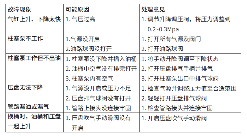 1. 柱塞泵没插入油脂里面,这时升降阀调至下降状态,泵管插入油脂里面即可出油
