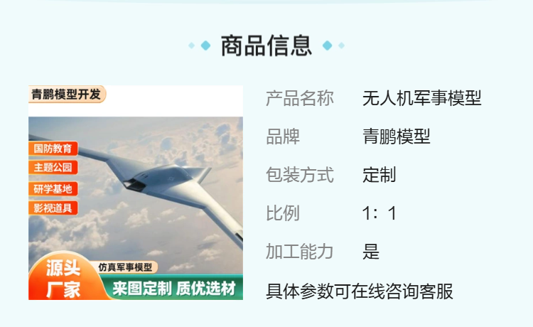 对于许多军事模型爱好者来说,拥有一款自己喜爱的无人机模型,是一种情感上的满足。青鹏模型开发有限公司深知这一点,因此我们提供的每一款金属模型,不仅是对技术的展示,更是对梦想的珍视。现在,通过简单的在线购买流程,无论您身处何地,都可以轻松拥有一款精心打造的军事模型。