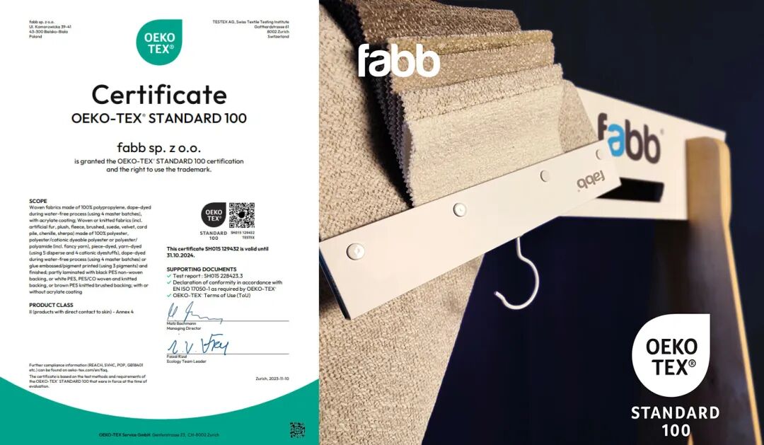 To maintain these high standards, Fabb subjects its products to stringent annual testing to maintain Oeko-Tex® certification. This ensures the materials are thoroughly tested and safe to use. SOURCE: Fabb