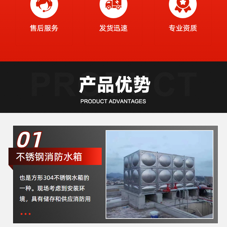 - 不锈钢消防水箱内置液位分级控制系统,确保消防用水不被日常取用侵蚀
