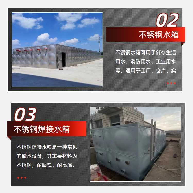 - 组合式拼接不锈钢水箱的模块间采用橡胶密封圈+不锈钢压板双重锁紧,杜绝小区地下室潮湿环境下的渗漏隐患
