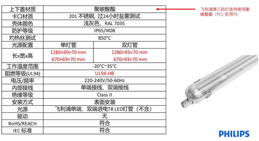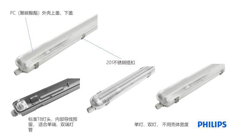 飞利浦WT069C 三防LED支架灯,灵活应用,方便维护,专为飞利浦单端、双端进电T8 LED灯管设计