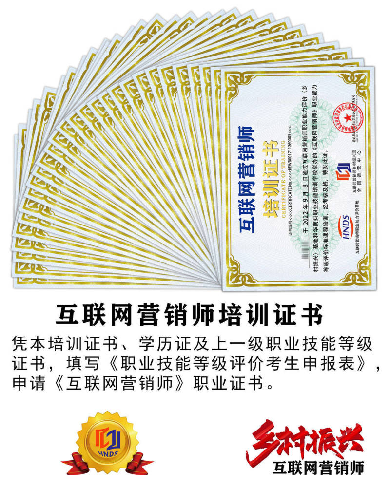乡村振兴互联网营销师人才培训班,掌握市场规律,收集市场行情,广告投放,学会利用互联网大数据分析,带动产品销售。