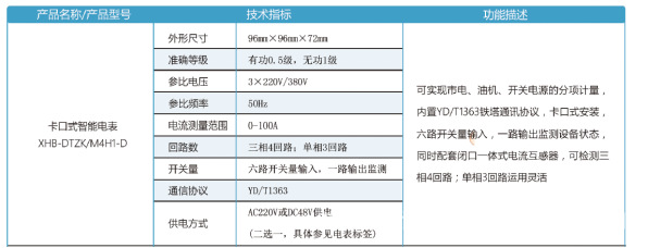 5、具有遥测、遥信、摇调等功能,适用于基站配电系统用电量及电参数监测。