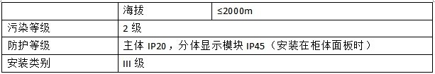 防护等级 主体IP20,分体显示模块IP45(安装在柜体面板时)