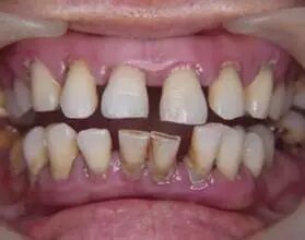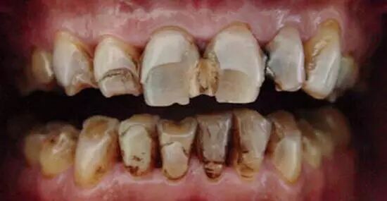②水质的因素:有些地区,由于水中含氟量高,过多地饮用氟牙齿会发黄,而且不是1~2个牙齿,是满口大烟渍牙。