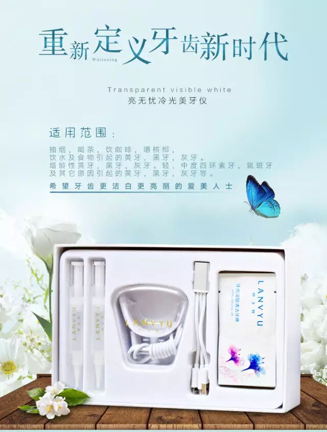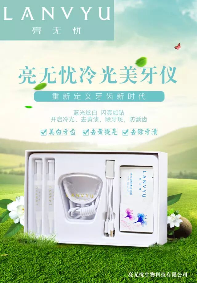 ④使用亮无忧冷光美白仪7天!亮无忧冷光美白仪,通过离子技术帮助增白啫喱渗透到牙渍里,采用低温蓝光,隔除一切有害的紫外线与红外线,照射到涂抹在牙齿上的特殊增白啫喱上,在最短的时间内使美白剂透过牙本质小管与多年来沉积在牙齿表面及深层的色素产生氧化还原作用,去除牙齿所附着的色素,使牙齿回到未经染色前的洁白。