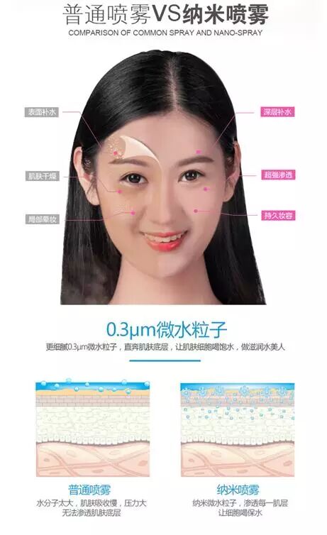 450纳米雾化片,水分子细腻,给您超大喷雾补水效果。
